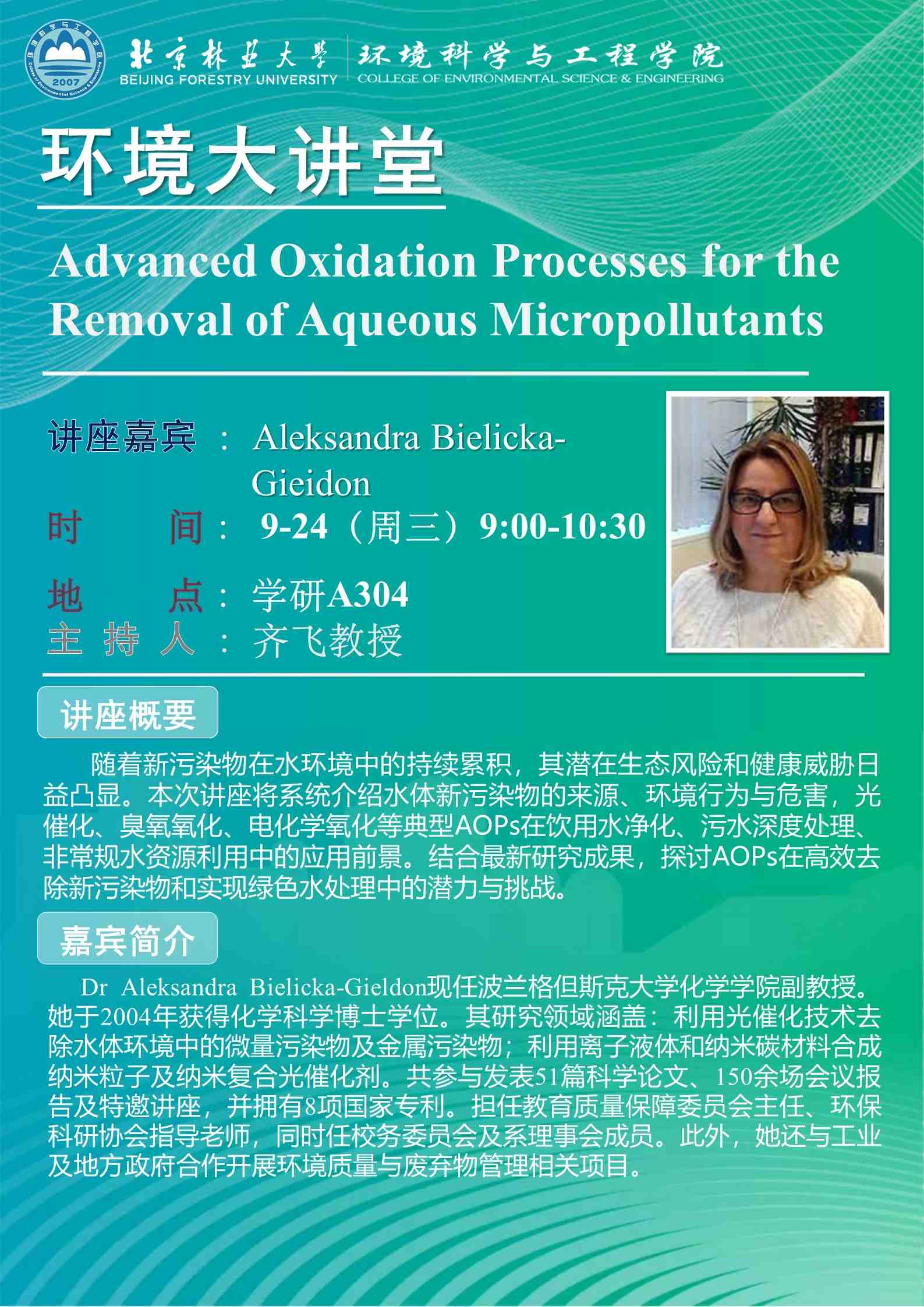 活动预告丨环境大讲堂:Advanced Oxidation Processes for the Removal of Aqueous Micropollutants